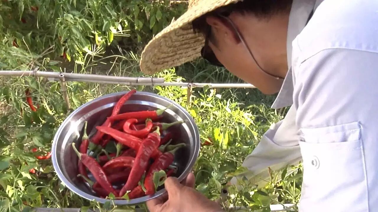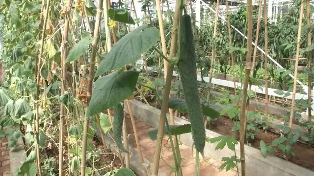 这里是南沙的渚碧礁的生态农场,在这个不到三亩地的生态农场里,不光种有黄瓜、西红柿,辣椒等30多种的各种时令蔬菜瓜果,它的建成极大地缓解了南沙守礁官兵和南沙建设者们吃菜难的问题。