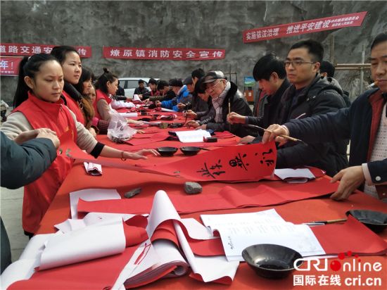 活动中县扶贫、卫生、教育等部门的工作人员向群众发放宣传资料,开展义诊和接受群众咨询等活动。在书赠春联处,人们三五成群围在一起,待民间书法家大笔落成,便迫不及待地把春联攥在手中,将对新春的寄语和未来生活的期盼纷纷带回家。