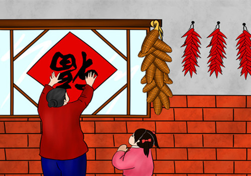 在贴春联的同时,一些人家要在屋门上、墙壁上、门楣上贴上大大小小的“福”字。春节贴“福”字,是我国民间由来已久的风俗。“福”字指福气、福运,寄托了人们对幸福生活的向往,对美好未来的祝愿。为了更充分地体现这种向往和祝愿,有的人干脆将“福”字倒过来贴,表示“幸福已到”“福气已到”。民间还有将“福”字精描细做成各种图案的,图案有寿星、寿桃、鲤鱼跳龙门、五谷丰登、龙凤呈祥等。