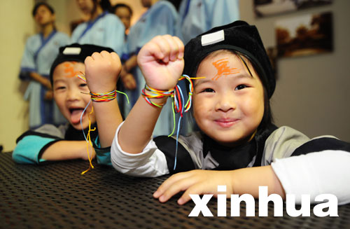 未到喝酒年龄的小孩子,大人则给他们的额头、耳鼻、手足心等处涂抹上雄黄酒,意在消毒防病,虫豸不叮。典型的方法是用雄黄酒在小儿额头画“王”字,一借雄黄以驱毒,二借猛虎(“王”似虎的额纹,又虎为兽中之王,因以代虎)以镇邪。清富察敦祟《燕京岁时记》:“每至端阳,自初一日起,取雄黄合酒洒之,用涂小儿领及鼻耳间,以避毒物。”除在额头、鼻耳涂抹外,亦可涂抹他处,用意一致。山西《河曲县志》云:“端午,饮雄黄酒,用涂小儿额及两手、足心,……谓可却病延年。”