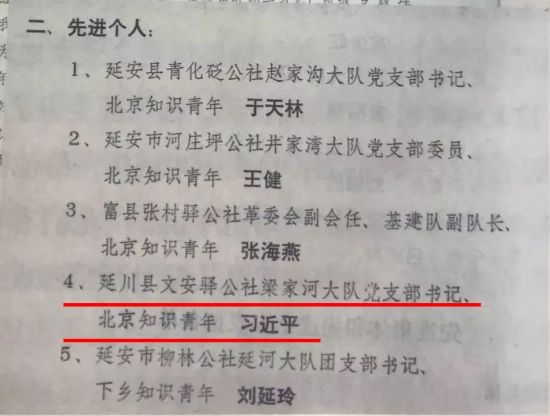 △1975年7月15日,中共延安地委召开上山下乡知识青年学大寨先进代表会,习近平等14名北京知青作为先进个人受到通报表扬