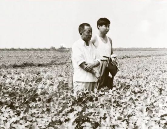 △1983年8月9日,时任中共正定县委书记的习近平到田间地头查看棉花生产情况