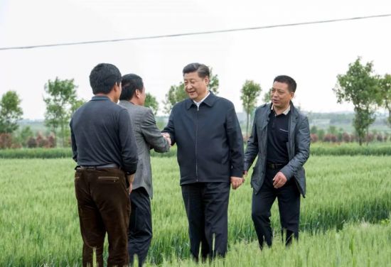 △2016年4月,习近平来到安徽省滁州市凤阳县小岗村察看小麦长势