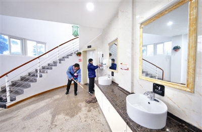 以前,一提起龙蟠河公厕,很多家住附近的居民直摇头。那是因为该公厕不仅下水道经常堵塞,而且蹲位少,给市民如厕带来不便。此次改造,这座公厕环境大变样,不仅外观变漂亮了,更重要的是过去存在的老大难问题——下水不通得到了彻底解决,此外蹲位也增加了。除了这些变化,市民还发现,相比以前,公厕管理也更加规范了,墙面上张贴着的“公共厕所管理标准”包括作业标准、维护标准两大方面12条具体规定,要求做到无积灰、无异味等。