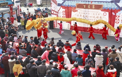 图为居民们正在欣赏舞龙表演。记者卢志永 摄