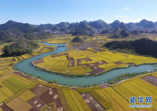 这是云南广南县八宝镇坝龙村的稻田景色(9月20日无人机拍摄)。新华社记者 杨宗友 摄