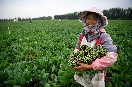 在宁夏固原市原州区彭堡镇姚磨村,村民在蔬菜基地收获蔬菜(8月27日摄)。 新华社记者 王鹏 摄