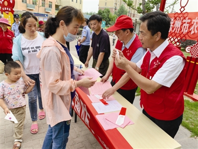 活动中,志愿者们在社区志愿服务广场设立便民志愿服务宣传点,向广大居民发放“文明创建”“扫黑除恶”“铁路护路”“移风易俗”等政策法规类宣传单,引导大家做文明市民,为创城助力。