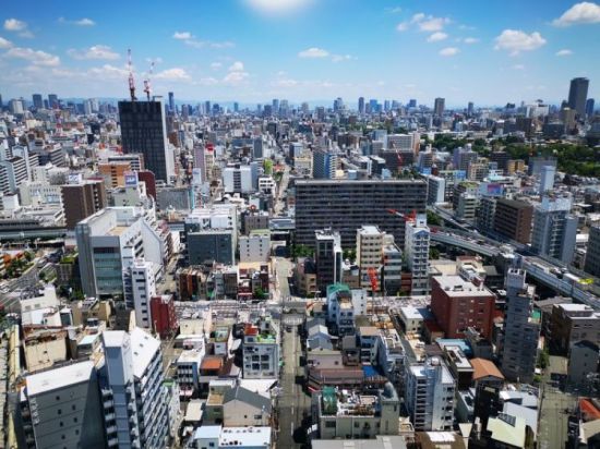 远眺大阪市区。大阪是众多世界闻名的日本制造业企业诞生地,大学和研究机构云集,吸引众多海外产学合作机构进驻。近年来,绿色创新、生物生命科学、机器人等新产业大批涌现。新华社记者蒋国鹏摄