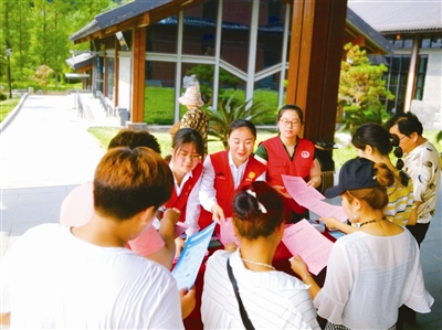 活动中,志愿者们在琅琊山游客中心门口向过往市民及游客宣讲文明餐桌行动的意义,发放《文明用餐倡议书》,倡导大家积极参与文明餐桌行动,学会节约粮食、文明用餐,养成健康文明的生活习惯。并主动提醒他们按需点餐,做到不浪费,不过量饮酒,酒后不开车。