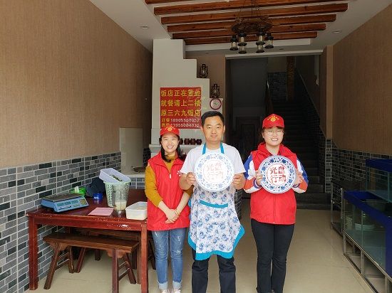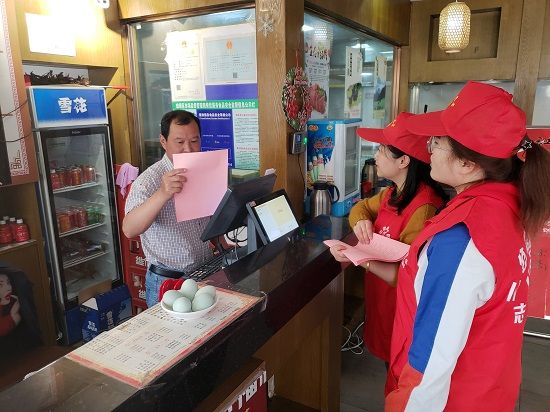 向辖区商户宣传“光盘行动” 图片来源:三岔路社区