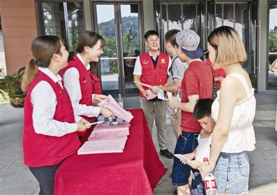 “文明是最美的风景。”志愿者们向游客散发文明旅游宣传手册,宣读文明旅游倡议书,提醒安全和理性消费,劝止不文明旅游行为。志愿者们热情真诚的服务,赢得广大游客的交口称赞。