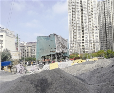 搅拌站南侧、东侧紧挨着居民小区,仅一墙之隔。“搅拌站主要在夜间施工,太吵了。”居住在附近的张先生告诉记者,搅拌站是今年三四月份出现的,最近凌晨机器开动起来,让人很难入眠,而且扬尘严重,室内门窗也不敢开。李先生住在旁边的丰乐世家,所居楼栋紧挨着这处院子,“晚上吵死人,大人小孩都休息不好。”李先生介绍。