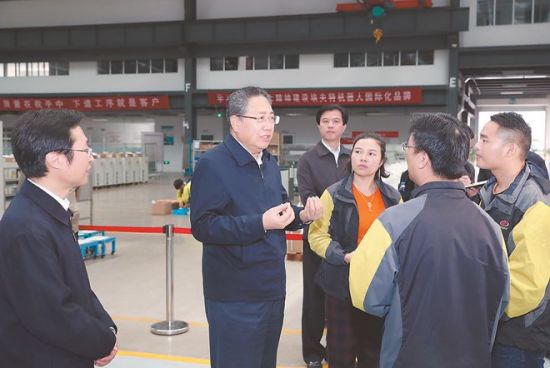 11月6日,省委书记李锦斌深入芜湖市宣讲党的十九届四中全会精神。在芜湖市埃夫特智能装备公司,他向党组织负责人了解学习贯彻全会精神情况,要求紧密联系企业实际,注重学懂弄通做实,努力在自主创新上取得更大突破。记者 徐国康摄
