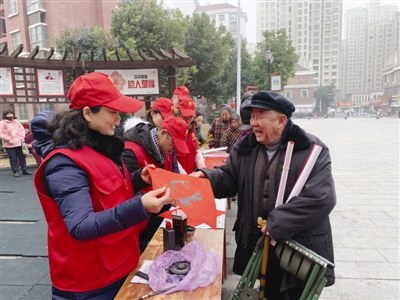 社区邀请书法爱好者和文化志愿者为辖区居民现场写春联和福字、寿字免费赠送,以这种特殊方式把节日的祝福送给辖区居民。虽然天气寒冷,但活动现场暖意融融,许多居民欢喜不已。一幅幅精彩的书法作品,一句句吉祥如意的春联,为即将来临的春节增添了浓浓的喜庆氛围,同时也让辖区居民感受到了节日的温暖,营造出温暖、和谐、祥和、喜庆的节日气氛。