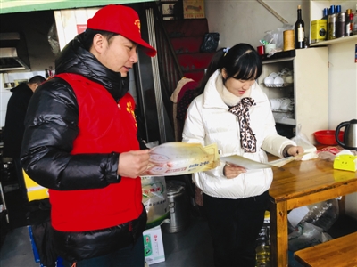 “您好!我们是‘光盘行动’宣传员。快过年了,我们号召文明用餐、拒绝浪费,‘光盘行动’、从你我做起!”活动现场,党员志愿者进店大力宣传“光盘行动”,向正在用餐的市民分发《文明餐桌 从我做起》倡议书等宣传材料并作详细讲解,还在店家的协助下,张贴了文明用餐杜绝浪费的宣传标语,引导大家养成爱惜粮食、杜绝浪费的好习惯。
