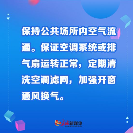 四、保持公共场所内空气流通。保证空调系统或排气扇运转正常,定期清洗空调滤网,加强开窗通风换气。