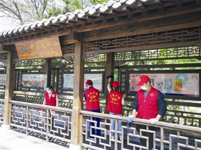 活动中,志愿者们按照分工,擦亮眼睛、撸起袖子,沿着游客进山必经线路,将景区北大门游客服务中心、观光车驿站等游客主要聚集场所作为环境整治重点。大家在原有保洁工作的基础上再次精细化排查,对北大门游客服务中心广场、售票窗口、母婴室、厕所等区域开展消杀消毒、擦拭灰尘、捡烟头、捡垃圾等志愿服务活动,进一步优化旅游环境、提升服务水平、树立行业新风。