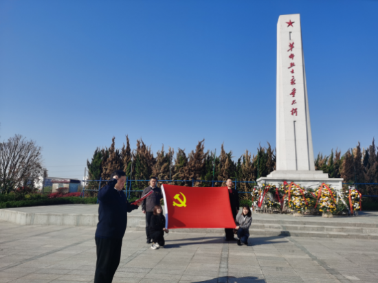 局党组书记、局长杨军面对烈士纪念碑碑文和碑图,深情地回顾了滁州的革命传统,讲述了先烈们不畏牺牲、无私奉献、可歌可泣的英雄事迹。追忆红色岁月,重温革命英烈们浴血奋战、出生入死的英勇壮举,给全体党员上了一堂别开生面的党课,让大家接受了一次思想上的洗礼。