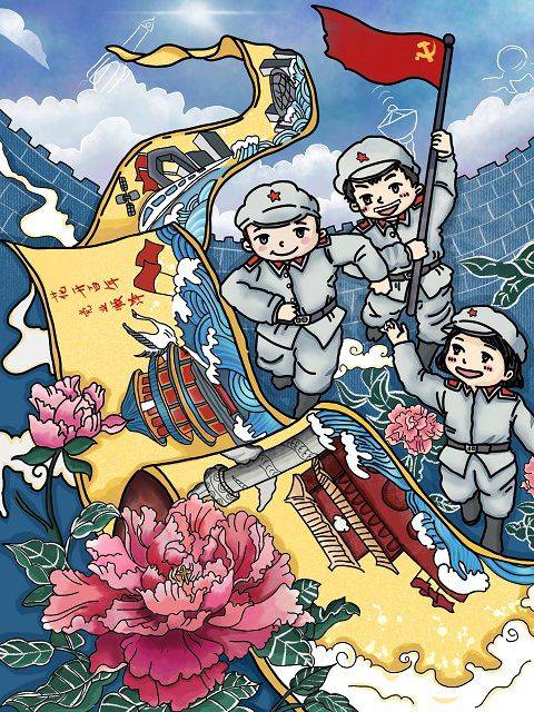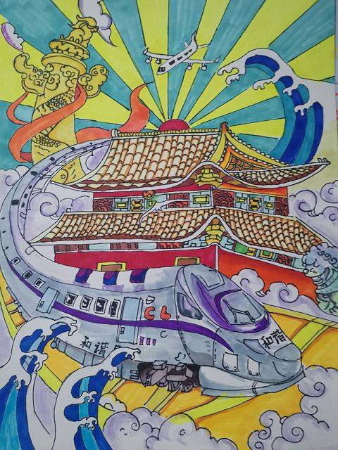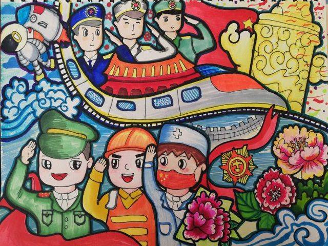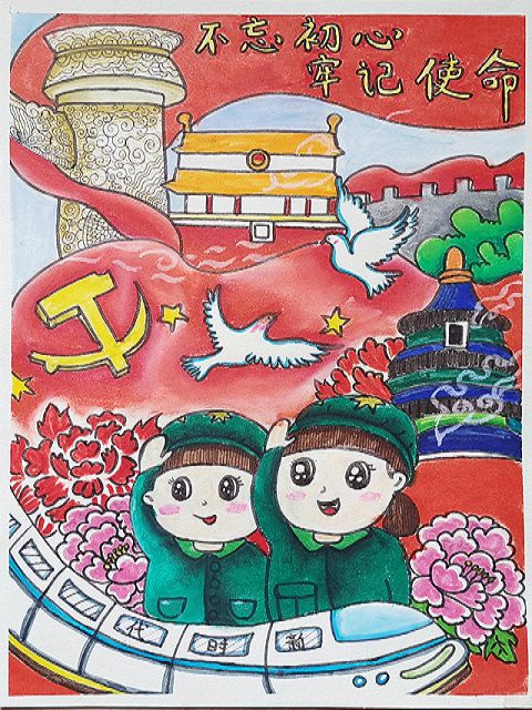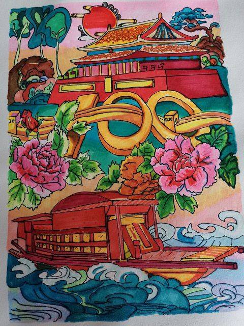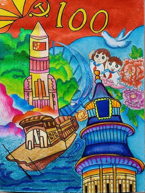学生手绘的一系列作品涵盖了党旗在我心中、心中有党、永远跟党走、中国战疫、中国高铁、中国梦、南湖红船等主题精神,展示了中国共产党带领中国人民不懈奋斗的光辉历程。