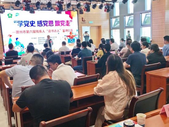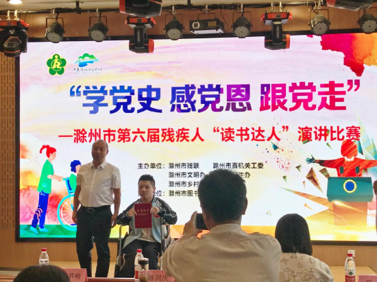 为进一步活跃和丰富残疾人精神文化生活,2021年9月30日上午,由滁州市残联、滁州市直机关工委、滁州市文明办、滁州市民生办、滁州市乡村振兴局主办,滁州市图书馆协办的“学党史 感恩党 跟党走”滁州市第六届残疾人“读书达人”演讲比赛,在滁州市图书馆成人部一楼多功能厅举行。