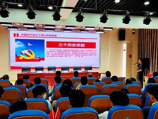 接着,滁州市小微企业商会工会联合会主席、东来税务师事务所副所长汪连才以“学党史 感党恩 跟党走”为主题,为大家上了一堂精彩主题党课。讲课中,汪连才用生动的语言和丰富的事例,深刻阐述了中国共产党为什么“能”、马克思主义为什么“行”、中国特色社会主义为什么“好”,引导大家从百年党史中汲取前行的力量。